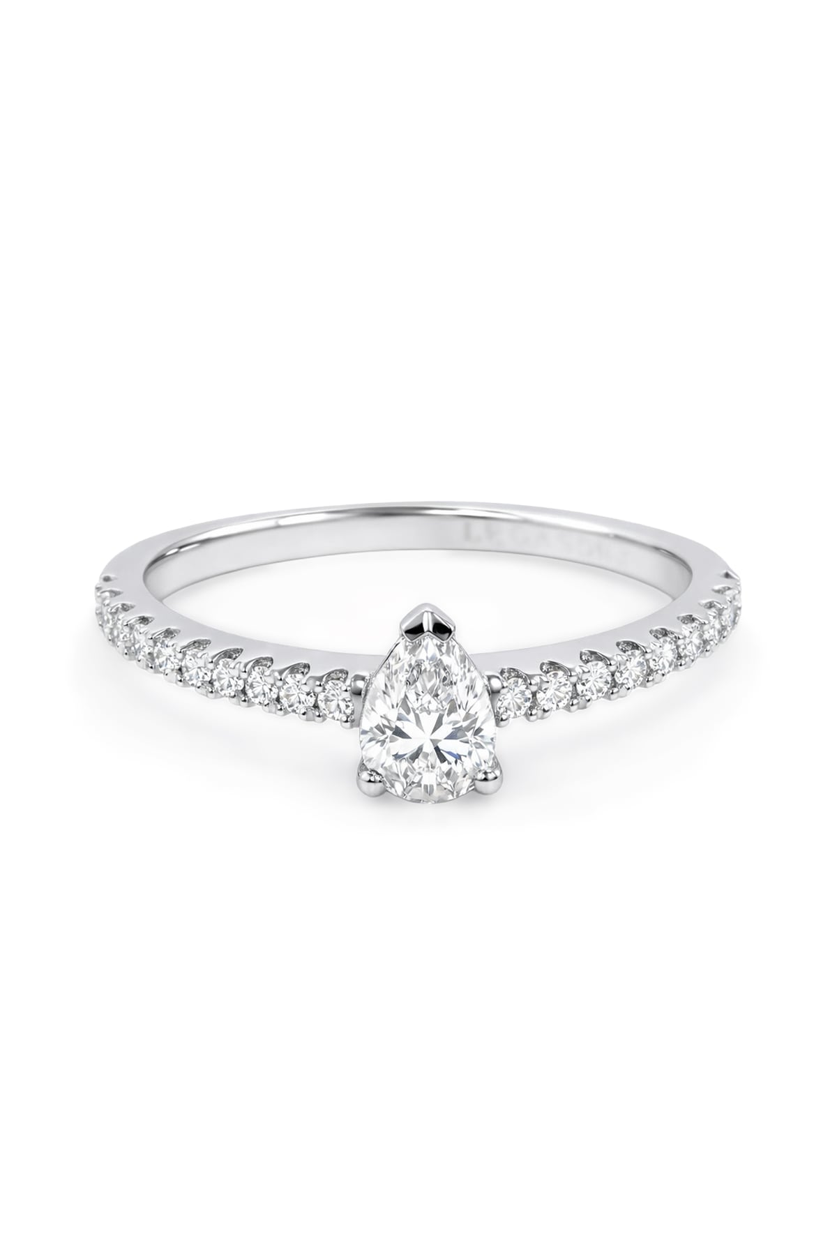 Pear Diamond Ring with Diamond Set Band in 18ct White Gold