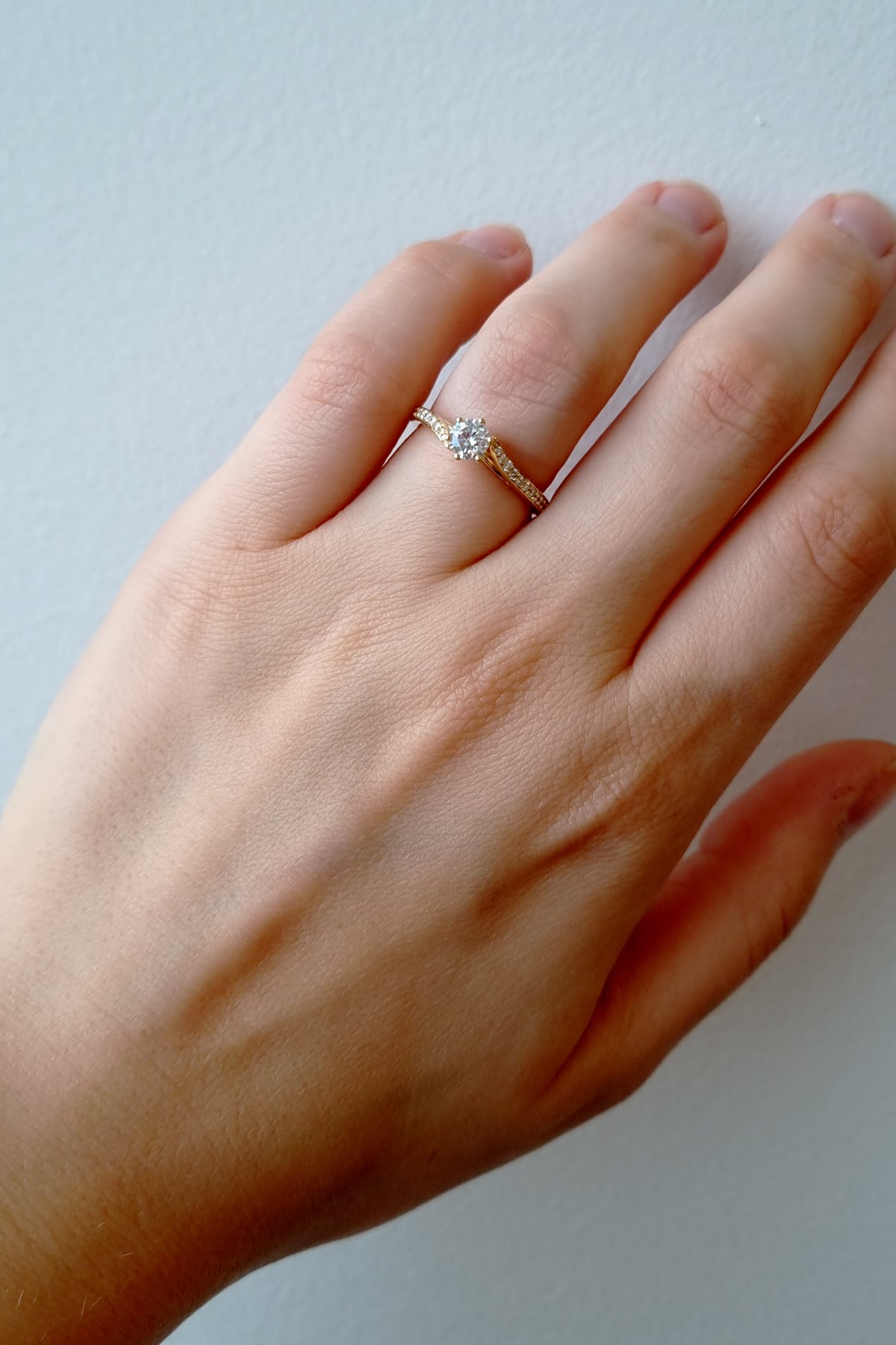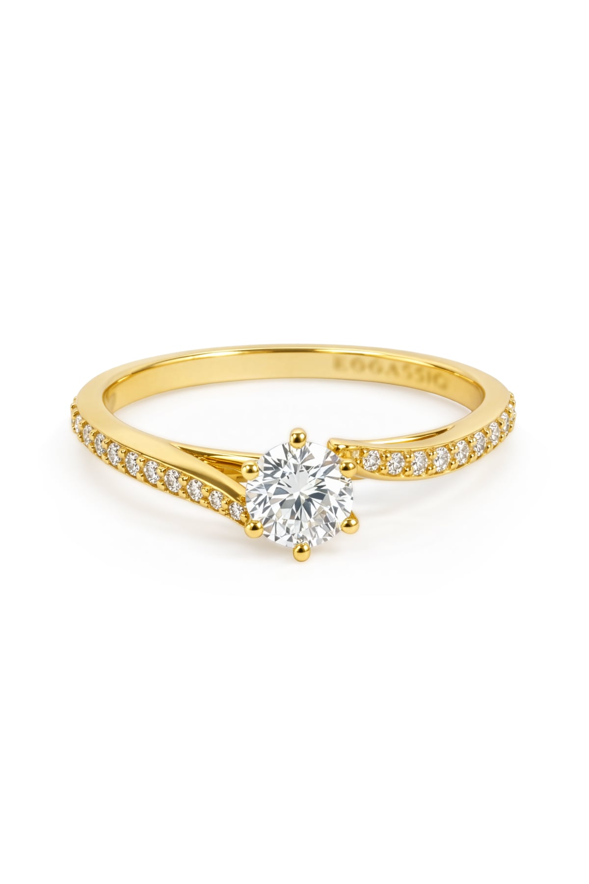 Round Brilliant Diamond Ring with Offset Diamond Band in 18ct Yellow Gold