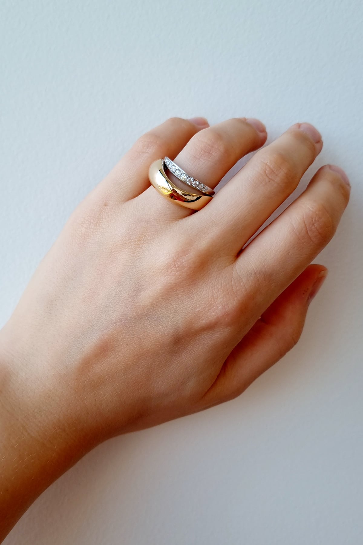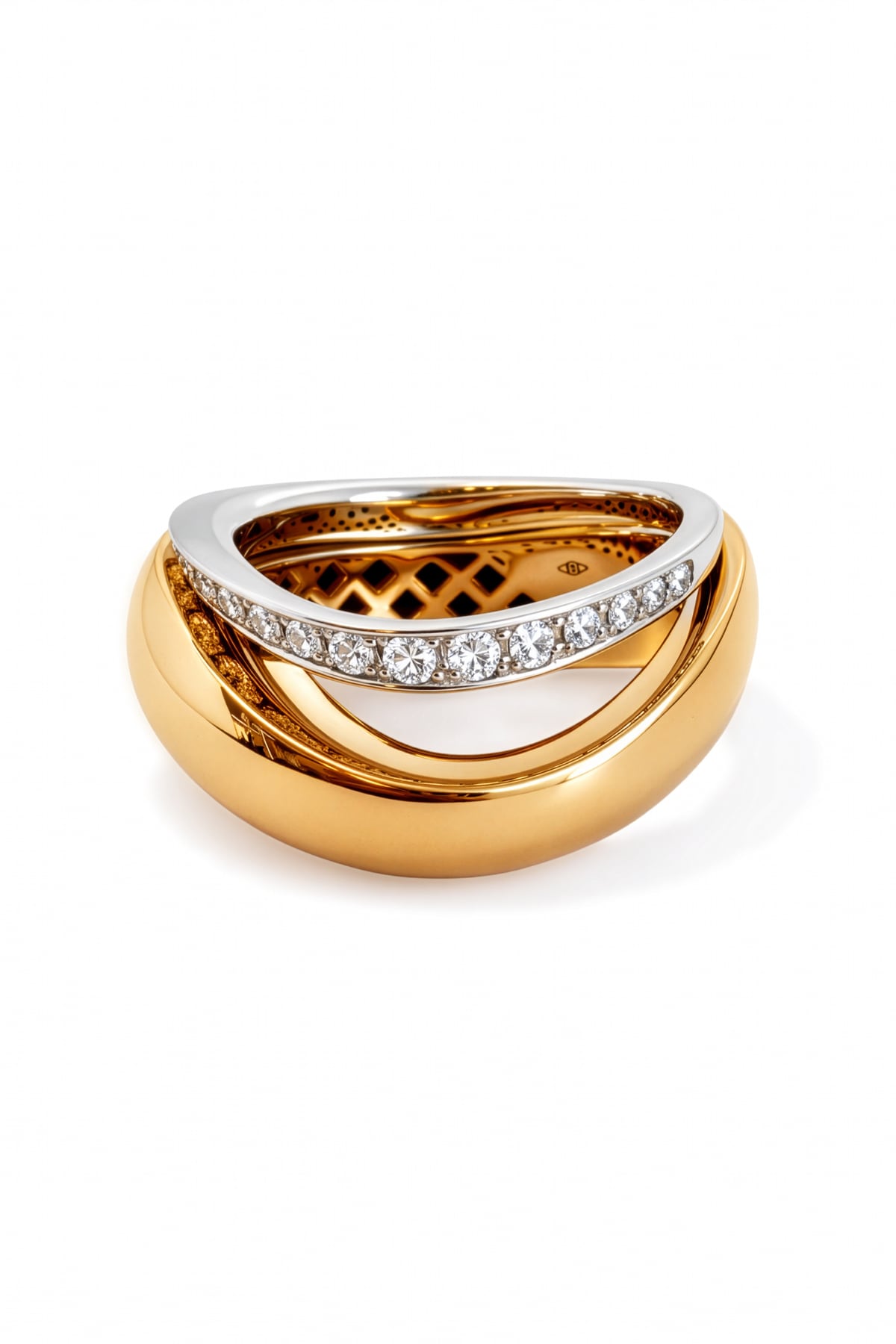Italian Yellow Gold Two-Tone Diamond Split Ring