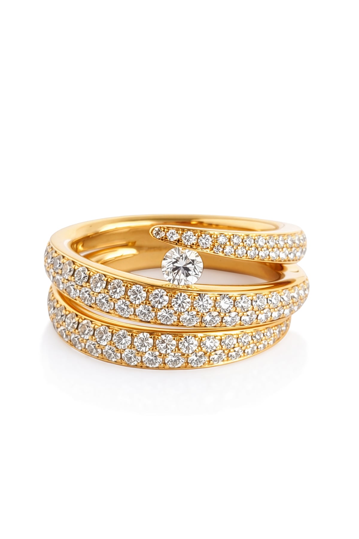Yellow Gold Italian Pave Three-Row Diamond Wrap Ring
