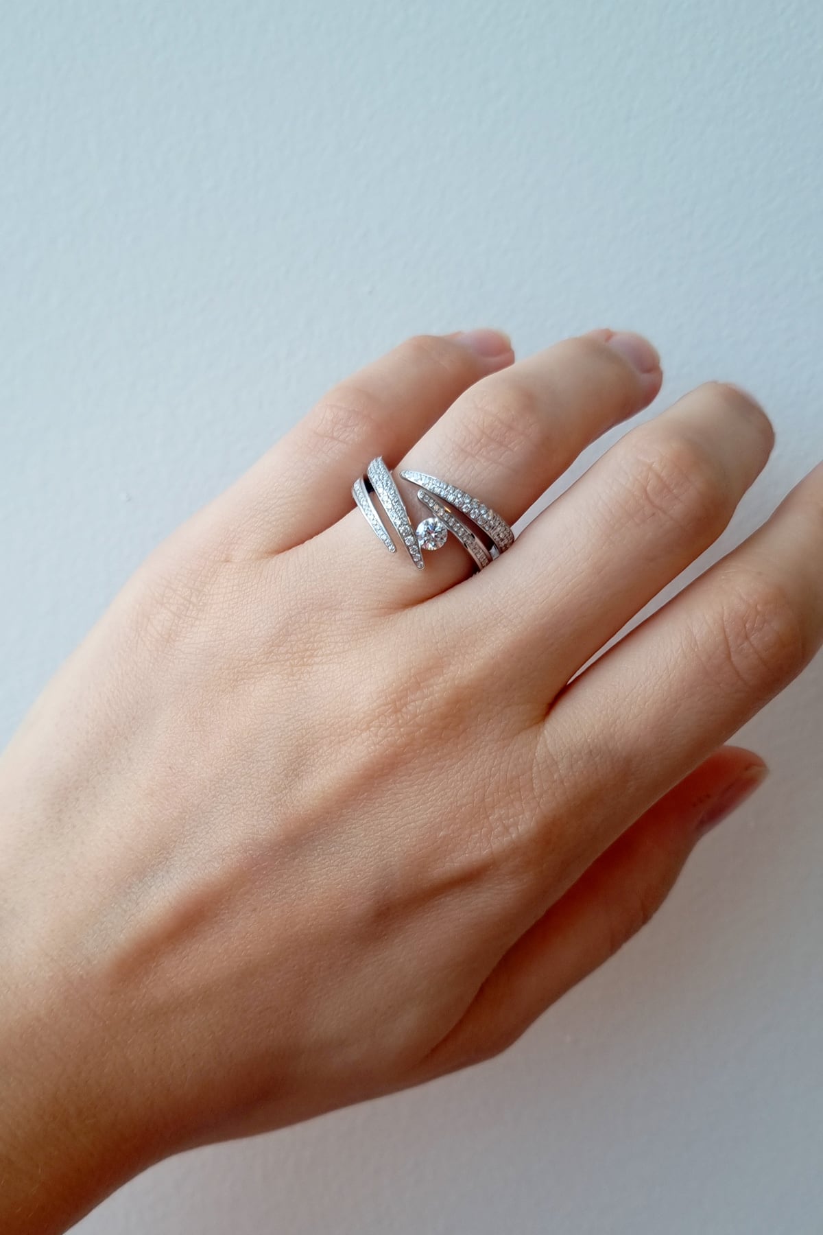 Pave Wrap Diamond Ring in 18ct White Italian Gold