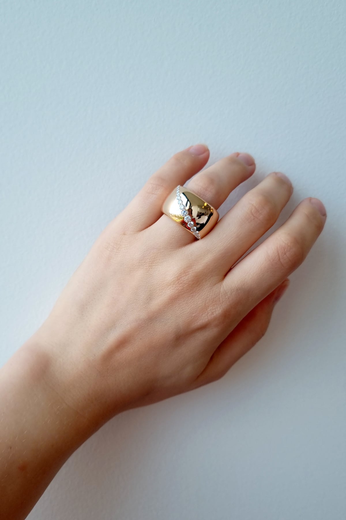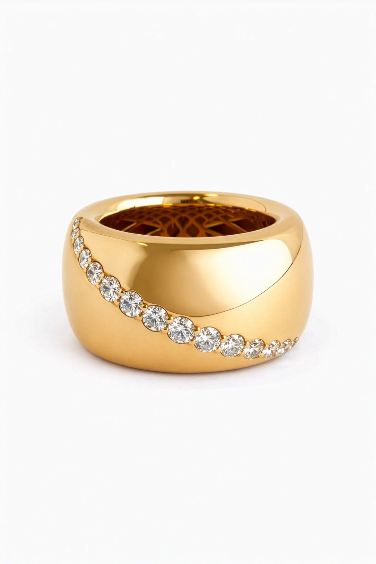 Italian Yellow Gold Diagonal Diamond Set Domed Ring