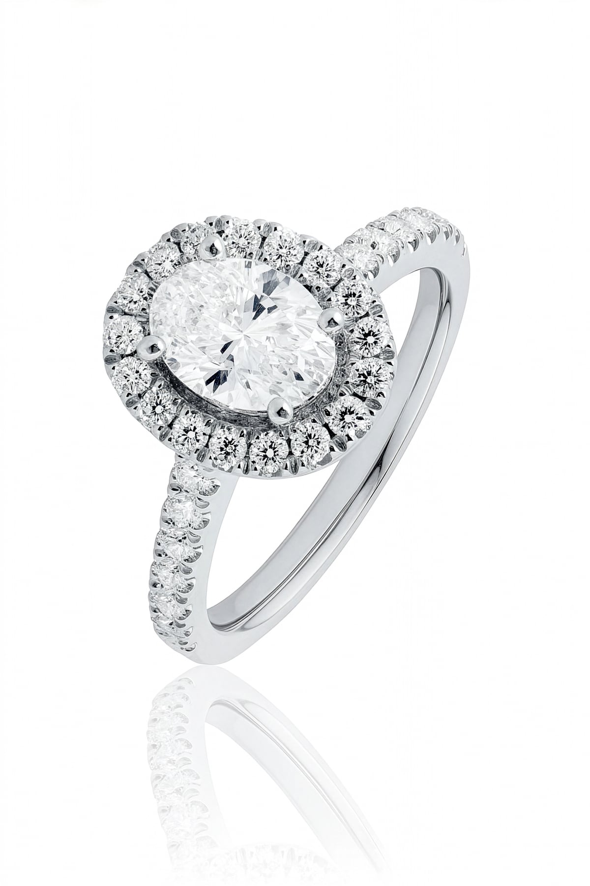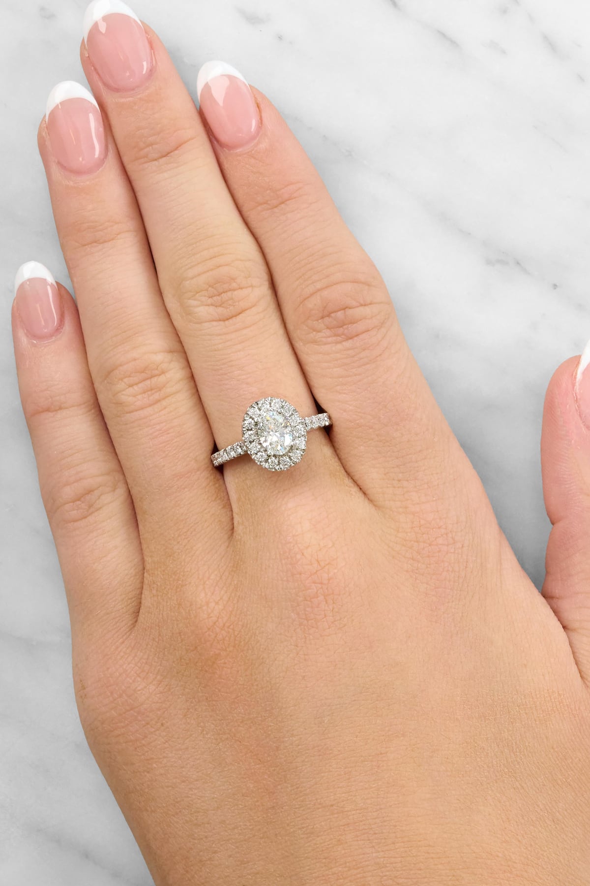 0.70ct Oval Diamond Halo Ring in 18ct White Gold