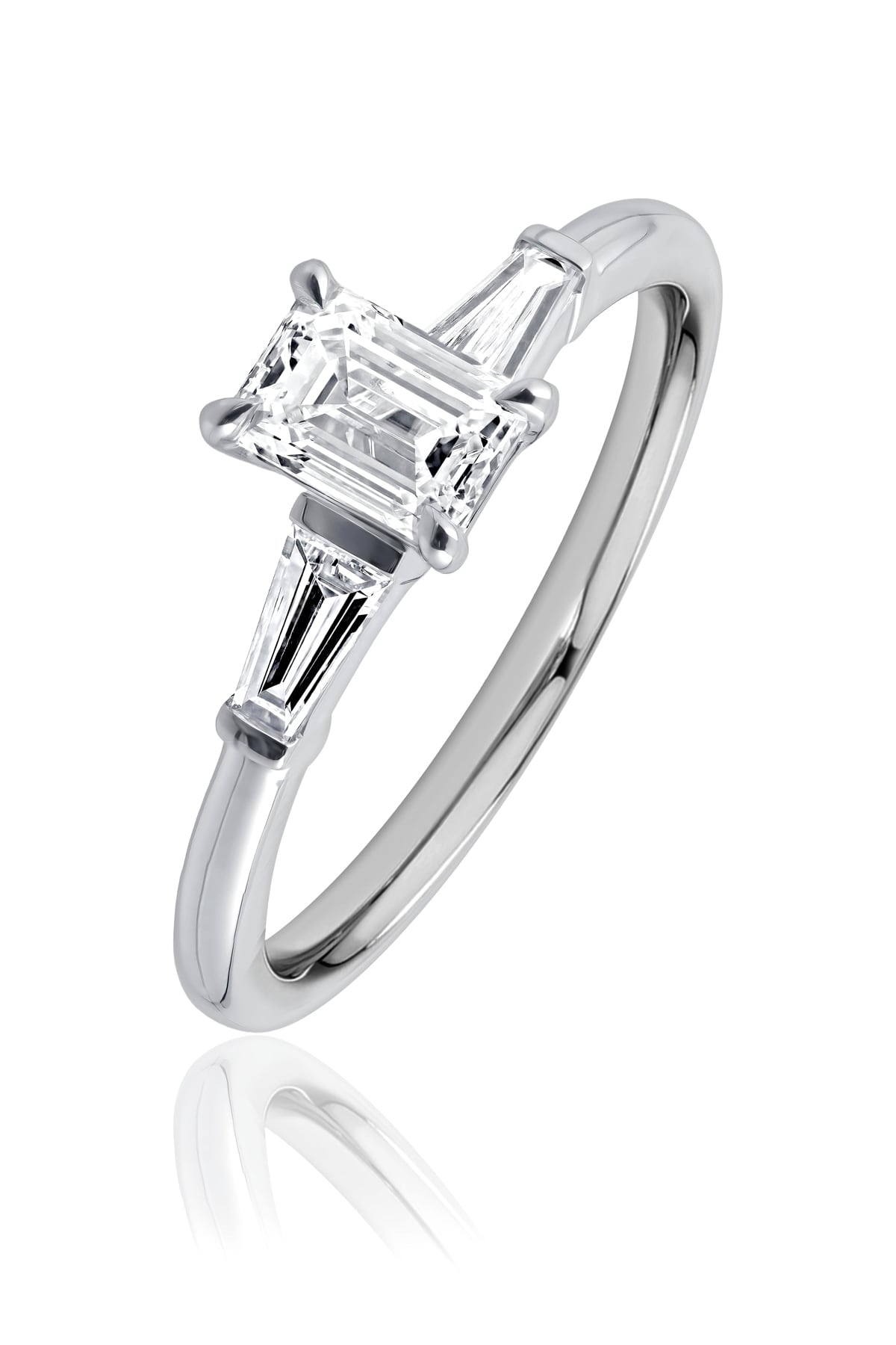 Emerald Cut Diamond & Baguette Diamond Ring set in 18ct White Gold