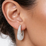 Pavé Set Tapered Diamond Hinged Earrings in 18ct White Italian Gold