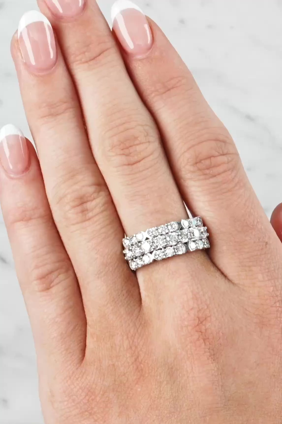 Stunning Three-Row Diamond Ring set in 18ct White Gold