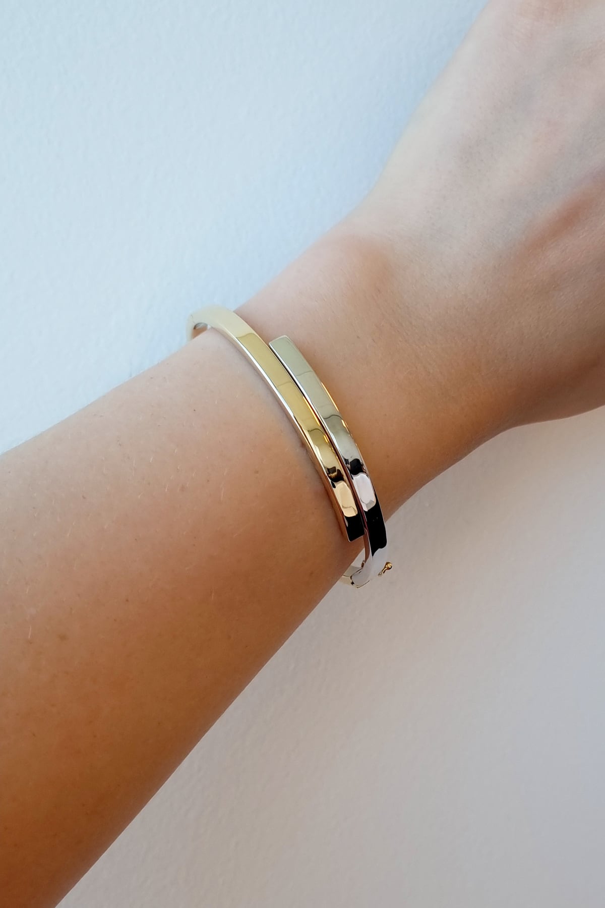 Timeless and versatile, this 9ct yellow and white gold bangle offers a refined two-tone look that suits any jewellery collection. Crafted in a hollow design for comfortable wear, it features a smooth, polished finish and a hinged opening for ease of wear. A secure safety clasp completes the piece, making it ideal for everyday elegance or layering with your favourite bangles.