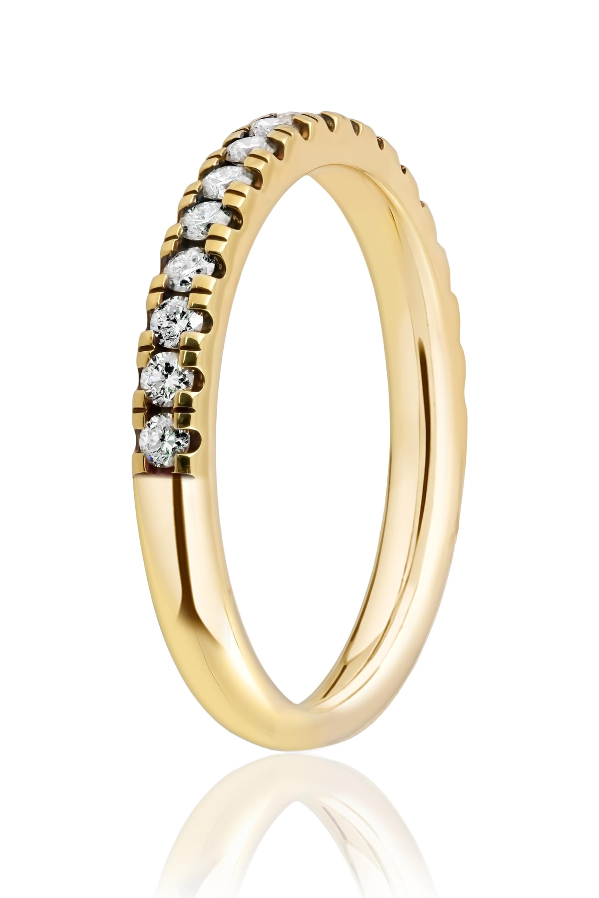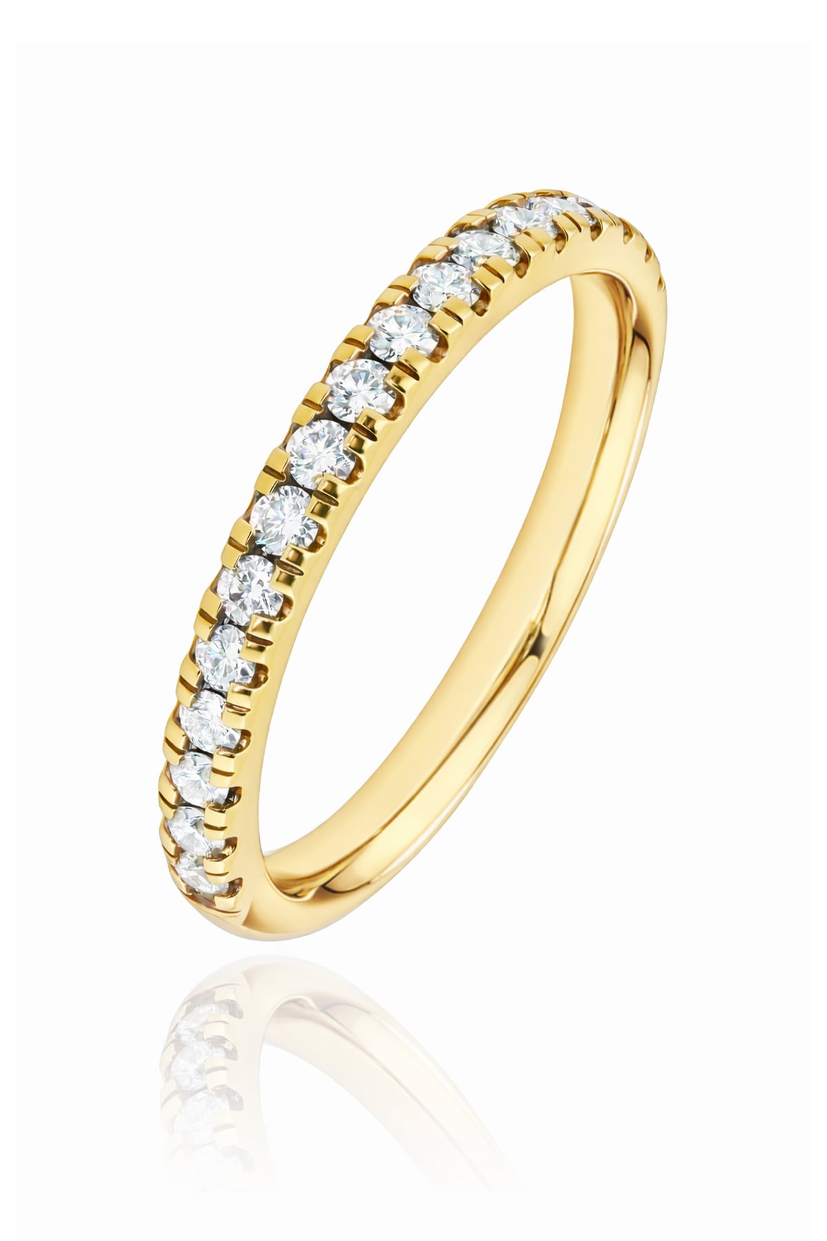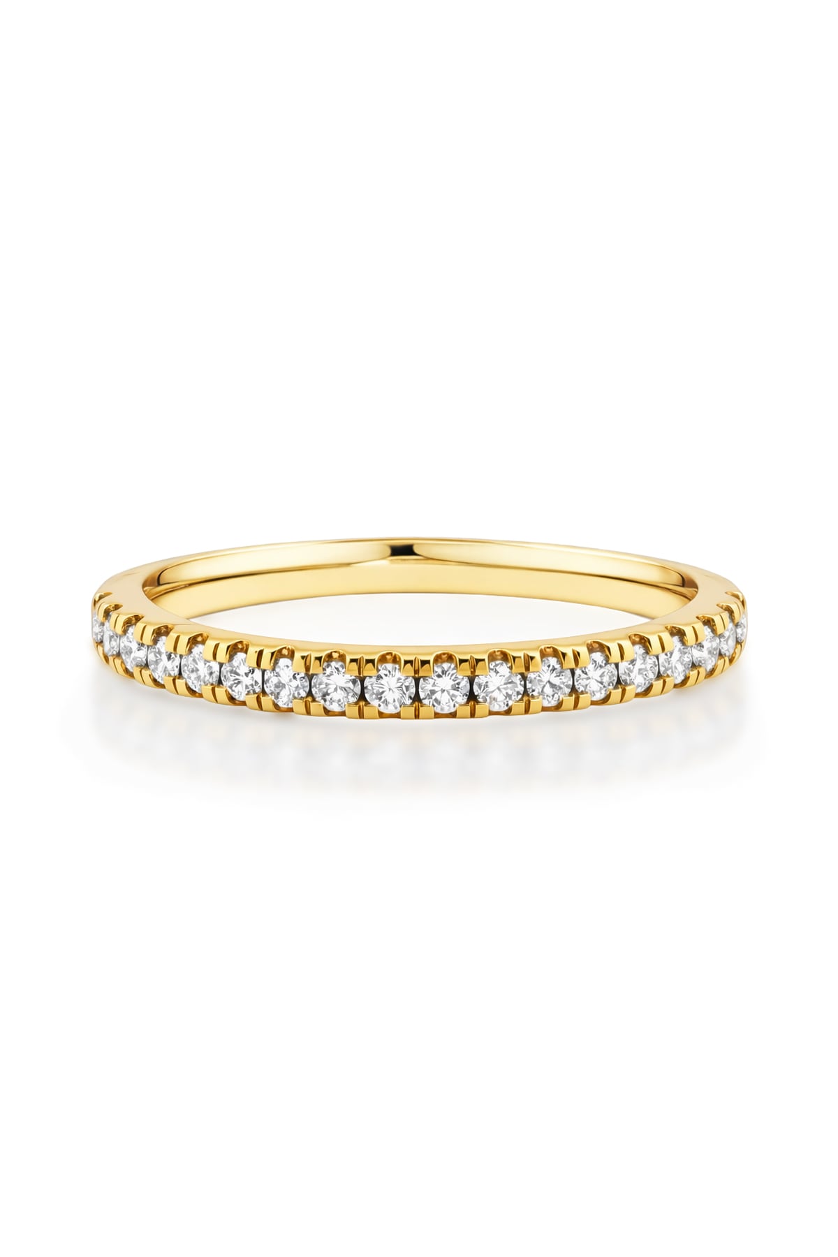 Elegant and timeless, this 18ct yellow gold diamond band is the perfect addition to any jewellery collection. Set with 17 round brilliant cut diamonds totalling 0.33ct, each stone is secured in classic claw settings that allow maximum light to shine through. The warm gold paired with bright G SI diamonds creates a beautiful sparkle, whether worn alone or stacked with your favourite rings.