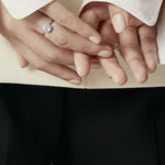 The Vela Halo Engagement Ring embraces gentle curves using a French cut Pavé setting style around the halo. The accent diamonds are set slightly on an angle, making your Hearts On Fire centre appear bigger, brighter, and bolder.