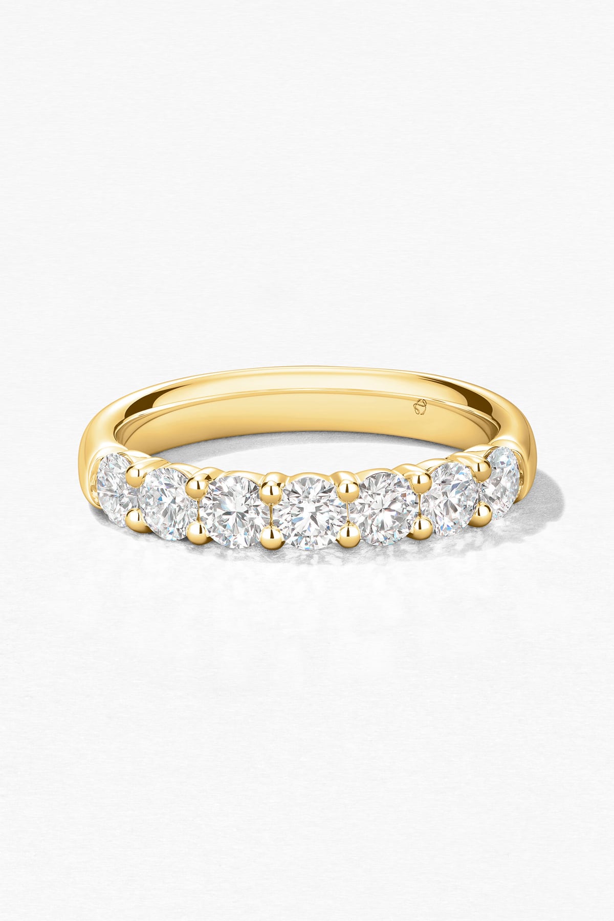 A timeless and classic design of seven perfectly cut diamonds gives this band a show-stopping sparkle! This piece is perfect worn alone or alongside any other ring.