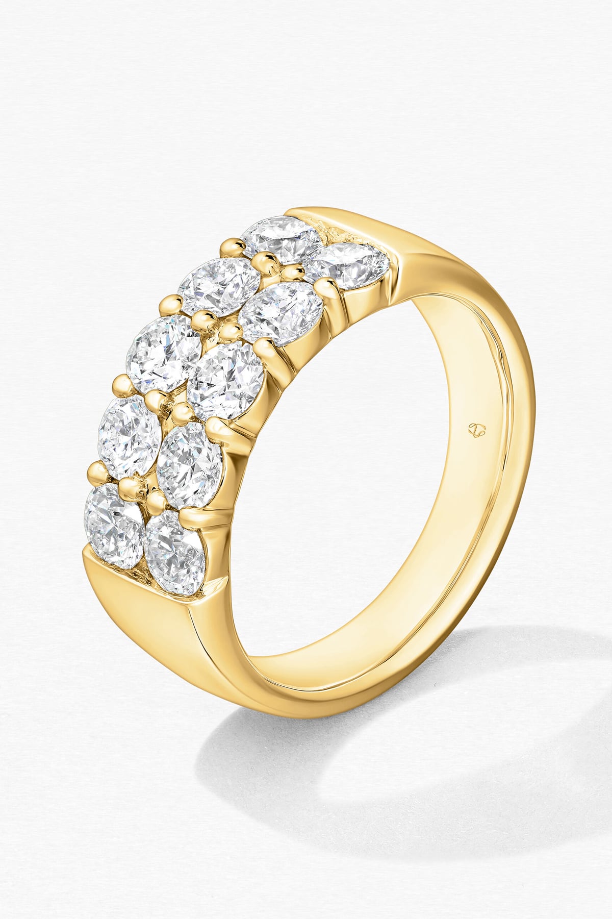 The Signature Double Ring is an enduring classic you'll keep coming back to. This beautifully crafted style features two rows of brilliant diamonds that also double as an eye-catching design detail. Featuring 10 perfectly cut diamonds, this ring will give you incredible sparkle, fire and brilliance.