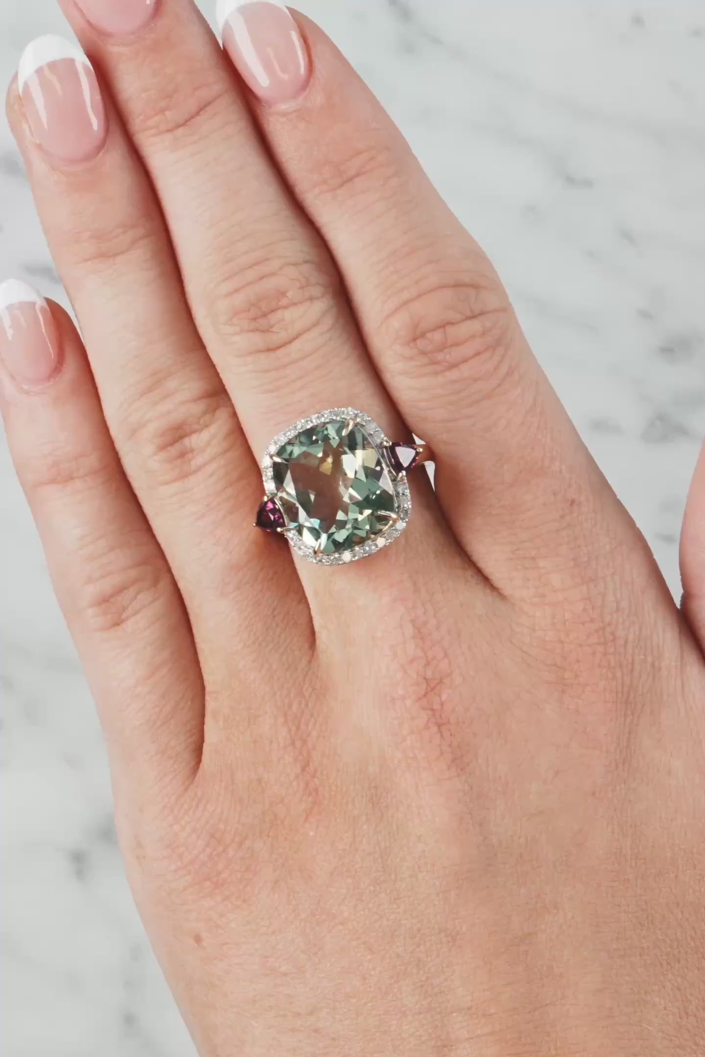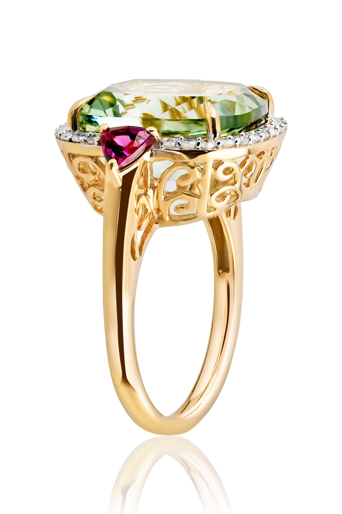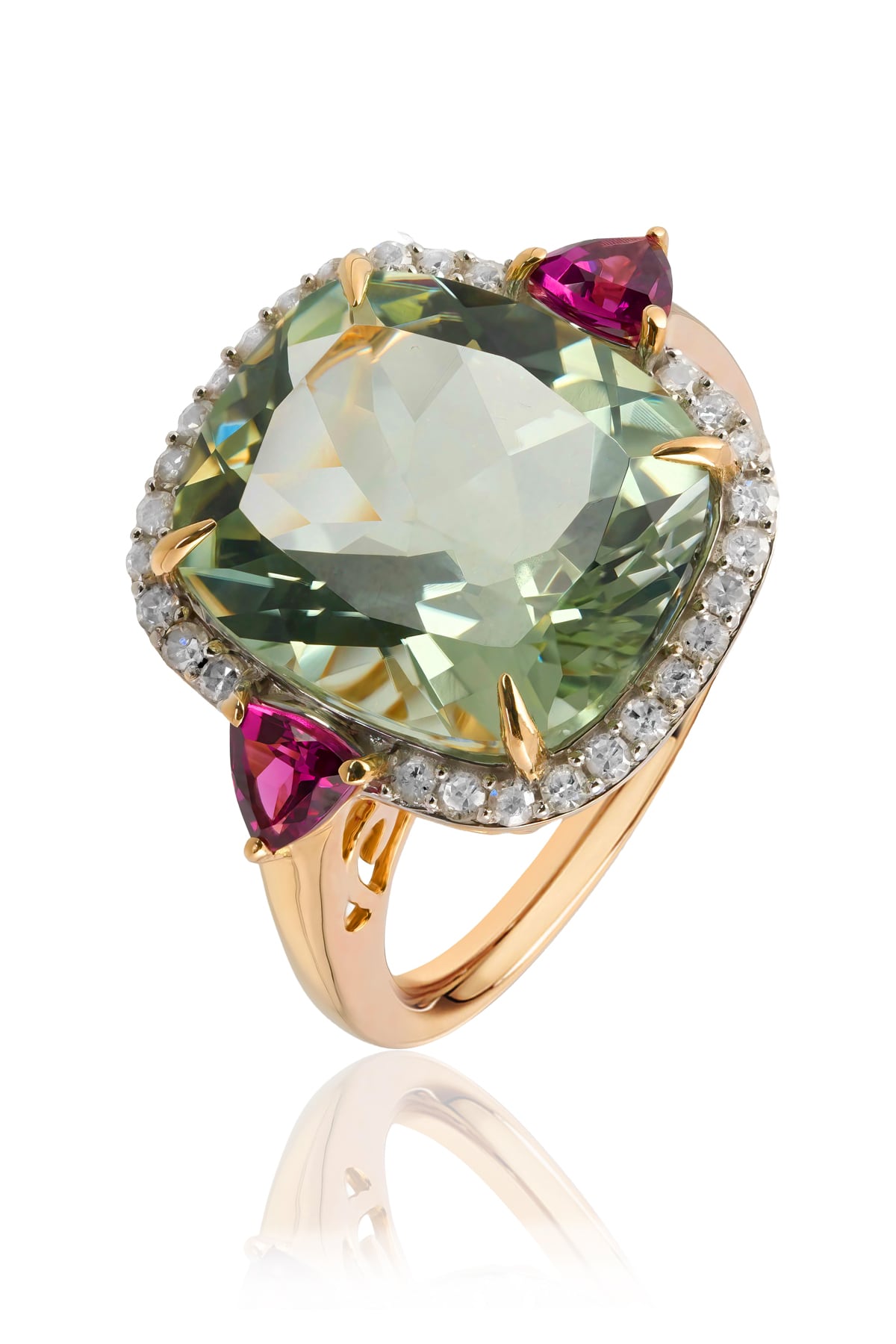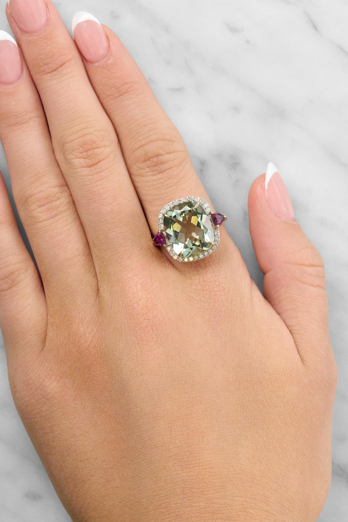Mint Quartz, Rhodolite Garnet & Diamond Dress Ring set in Yellow Gold