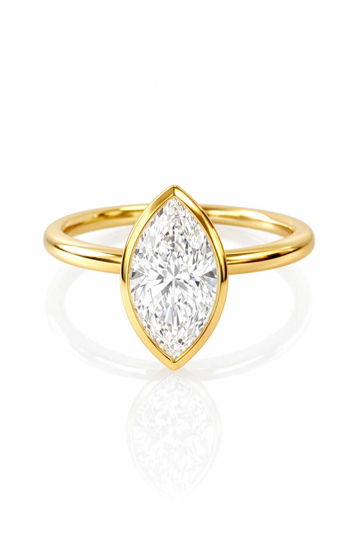 Discover understated elegance with Amber from The Madison Collection. Designed for those who appreciate modern refinement, this 18ct Yellow Gold Bezel Set Solitaire features a striking 1.53ct Marquise Cut Lab-Grown Diamond, blending bold form with effortless sophistication.