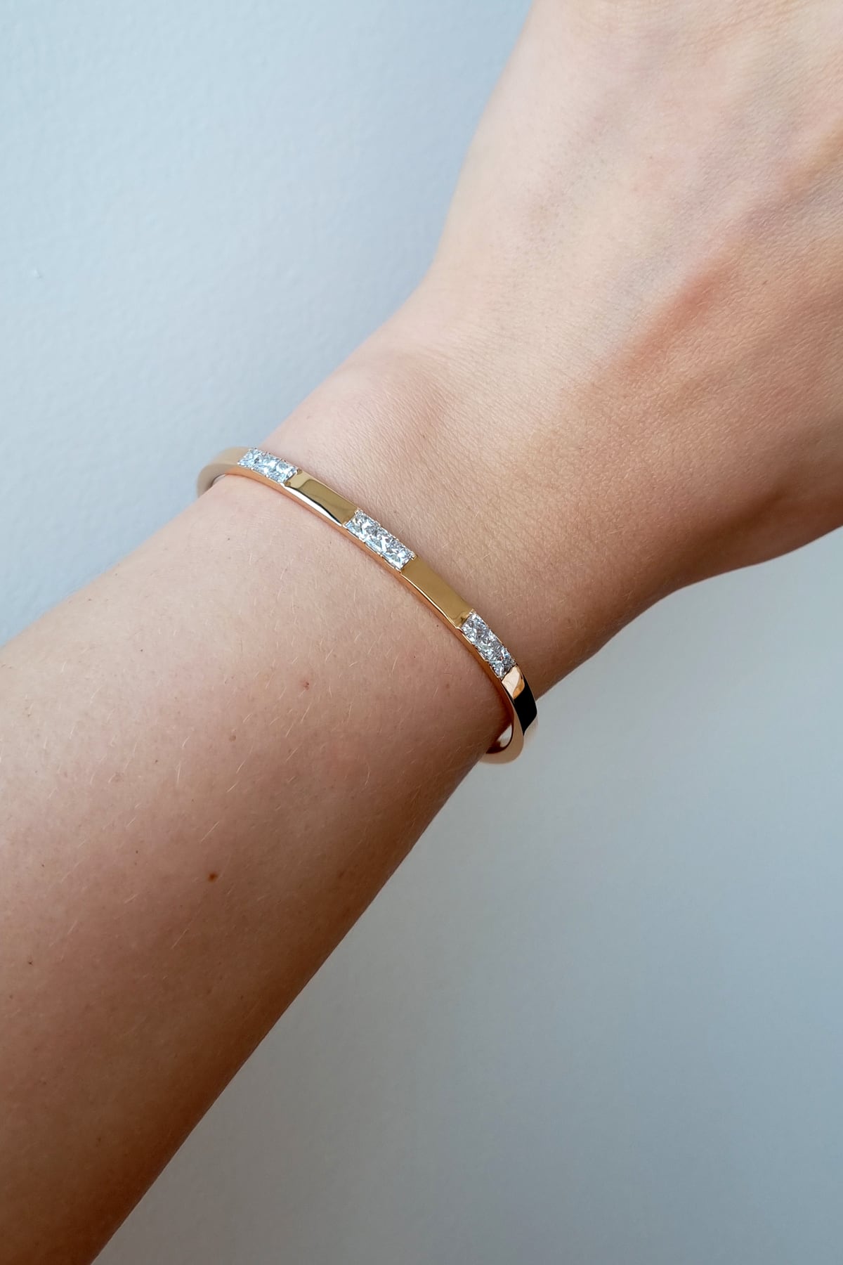 18ct Yellow Gold Italian Princess Cut Diamond Bangle