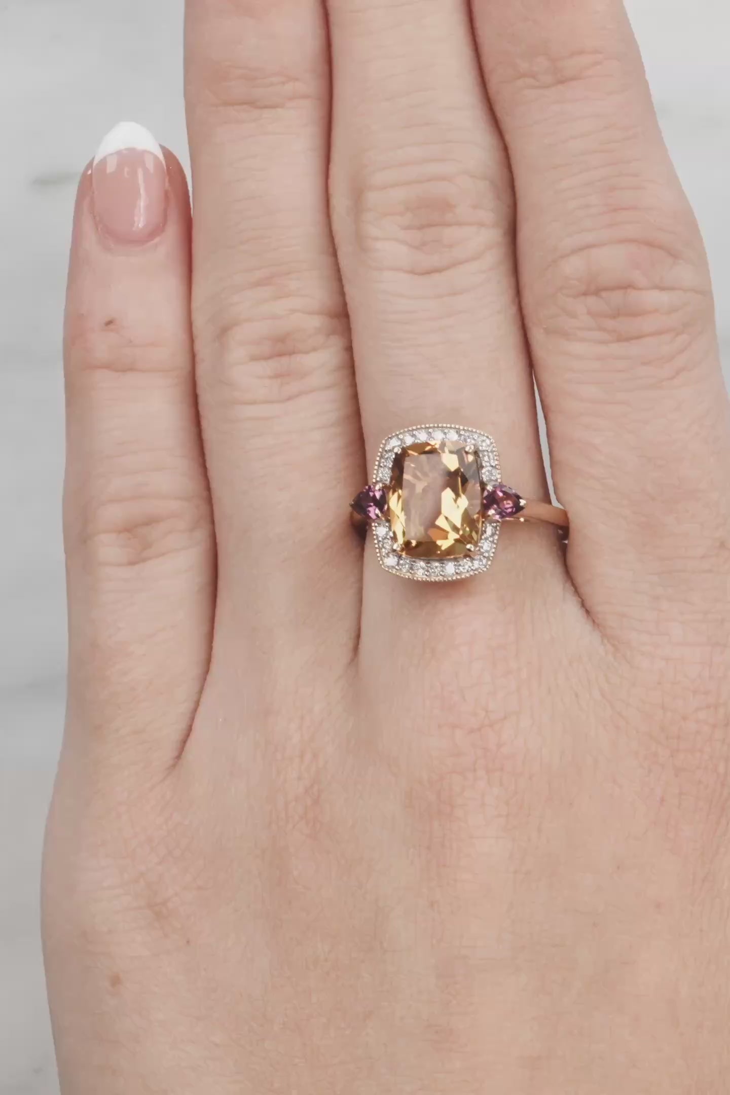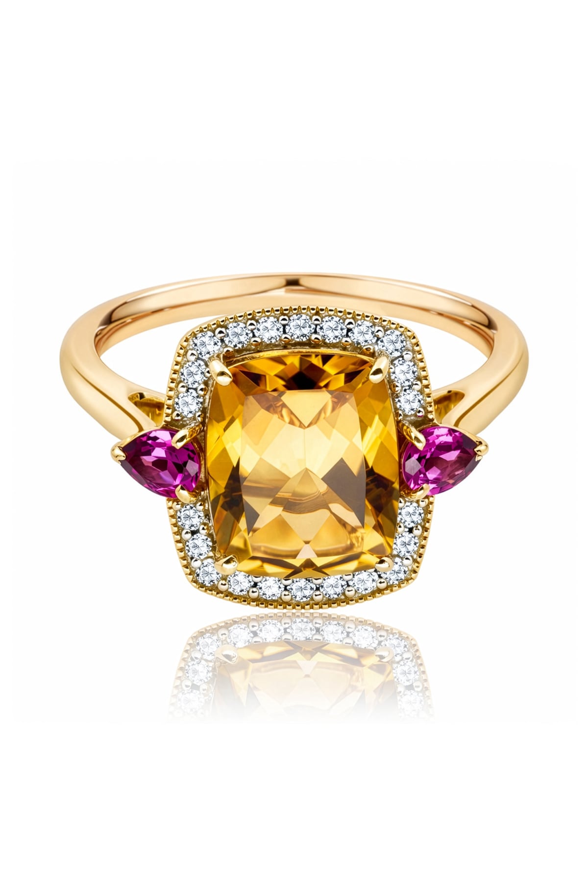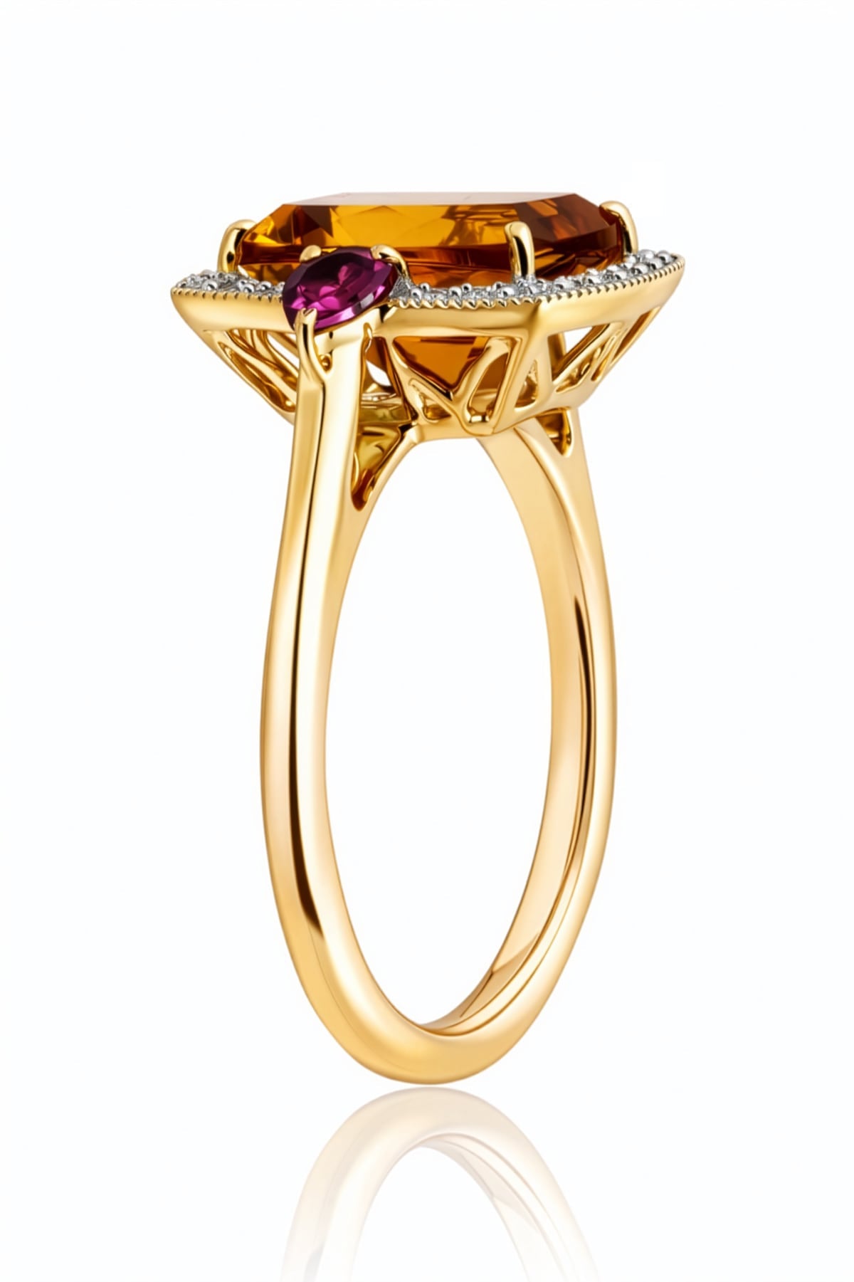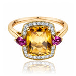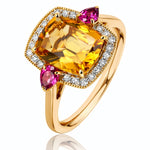 Citrine, Rhodolite Garnet & Diamond Dress Ring in Yellow Gold