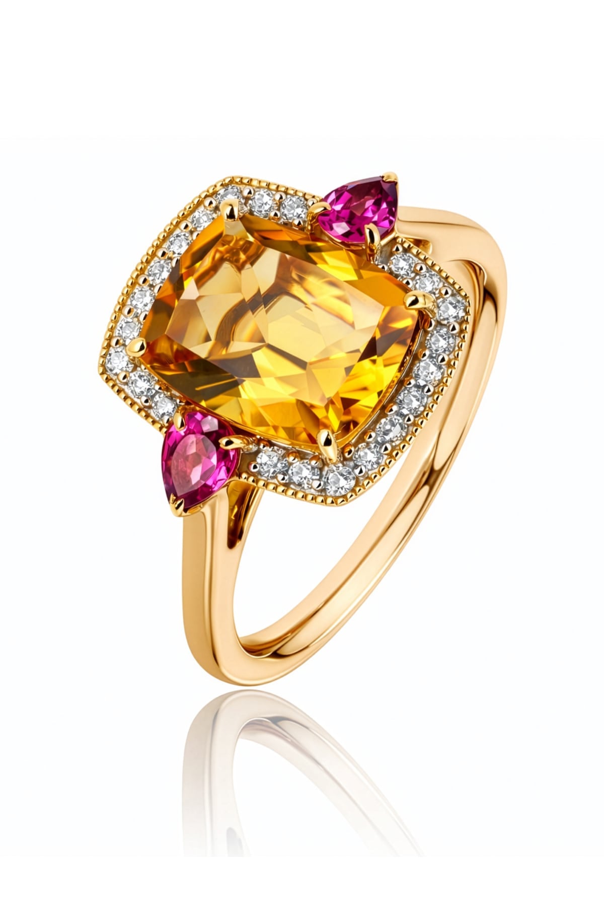- Centre Stone: Cushion Cut Citrine, 10x8mm