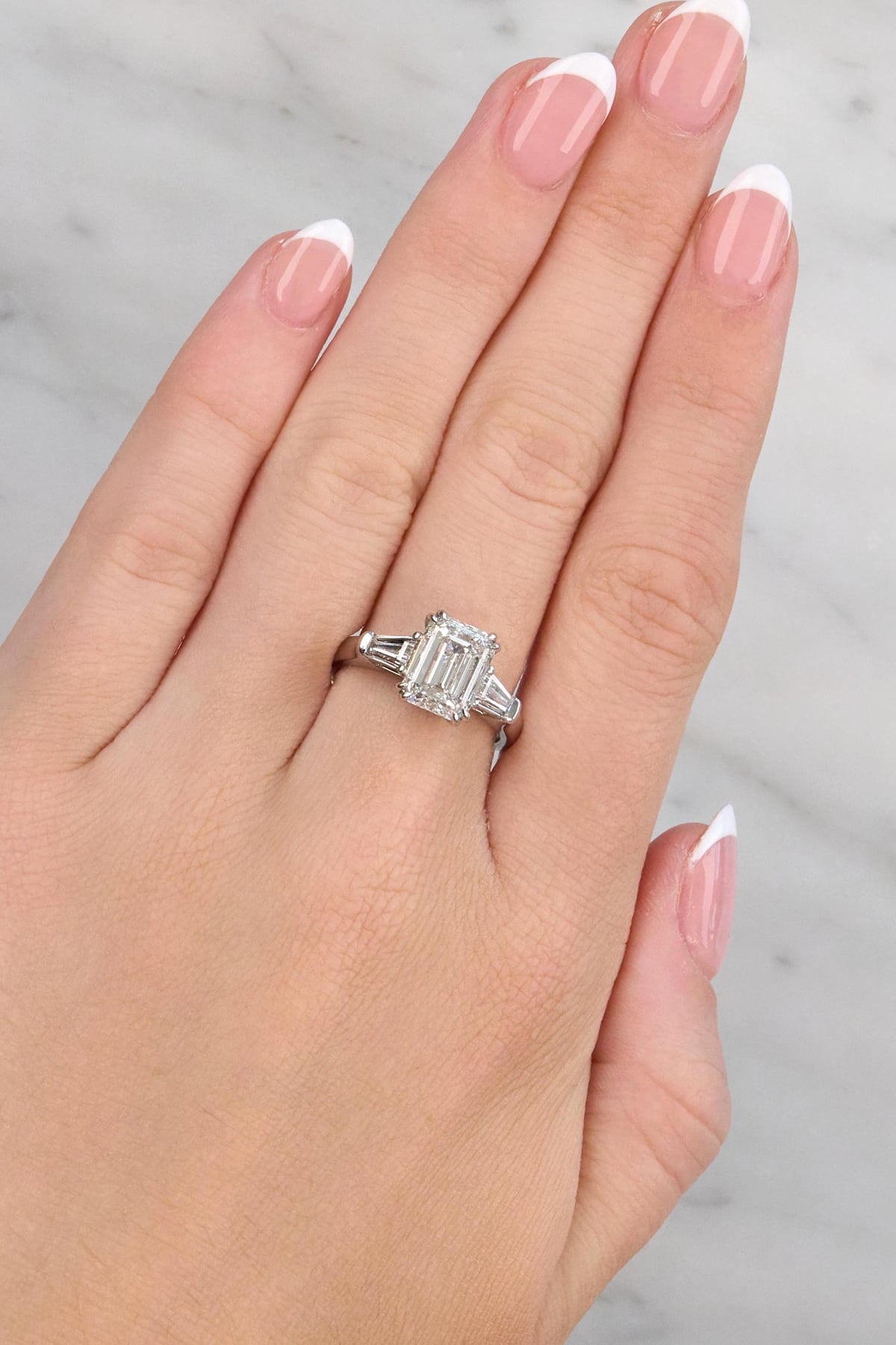 Understated, architectural, and impeccably made, this exceptional ring centres on a breathtaking 3.01ct emerald cut diamond of I colour and VVS2 clarity. The clean lines and hall-of-mirrors effect of the emerald cut are beautifully complemented by a pair of tapered baguette diamonds set into the shoulders, adding balance and refinement without distracting from the centre stone. Entirely handcrafted by LeGassick, this ring is a celebration of precision, proportion, and timeless design.