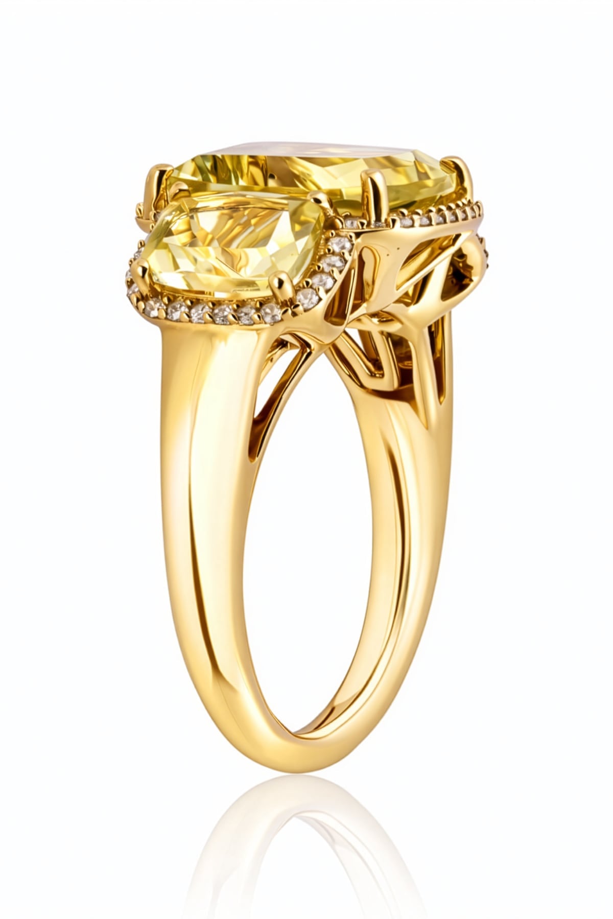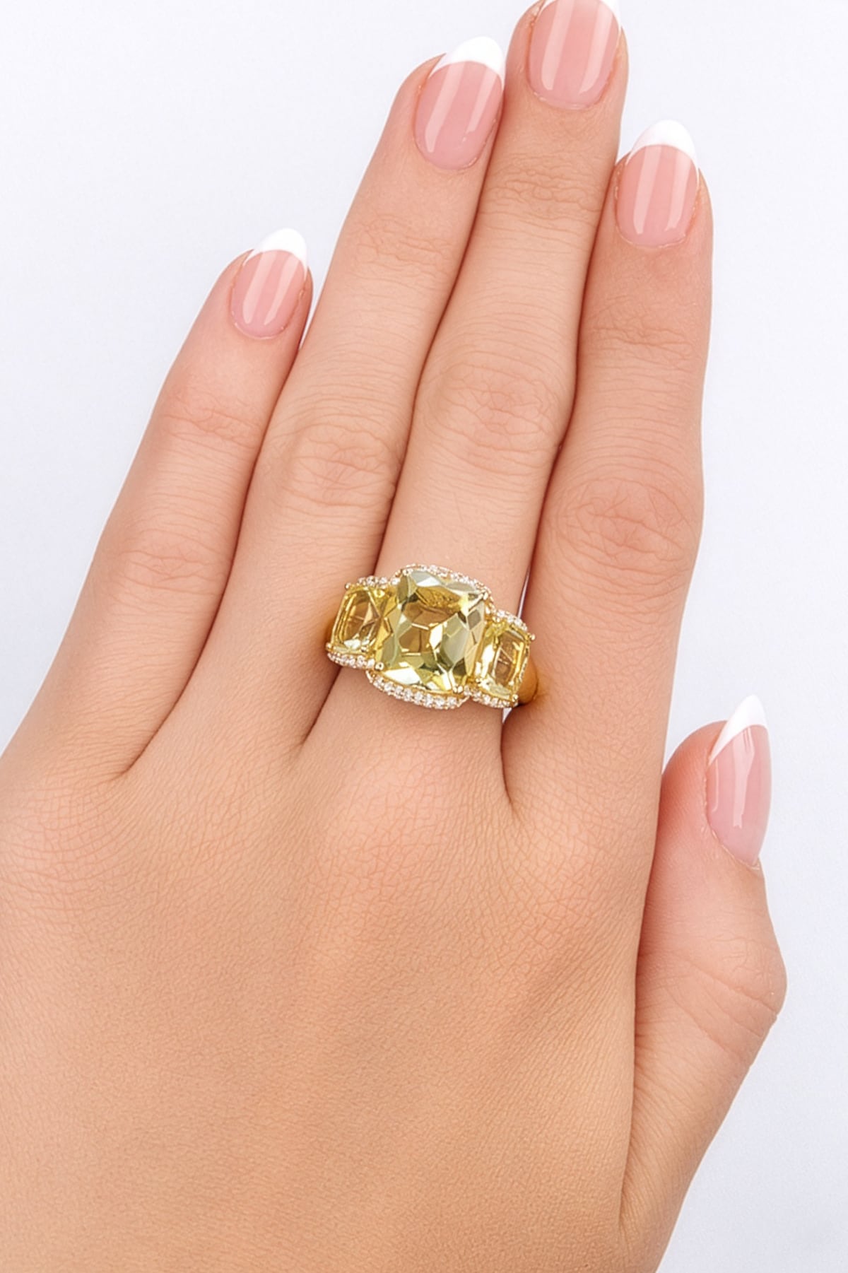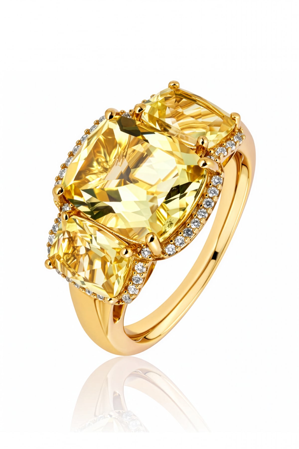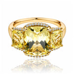 - Side Stones: 2 × Lemon Quartz, cushion cut, 7 × 5 mm