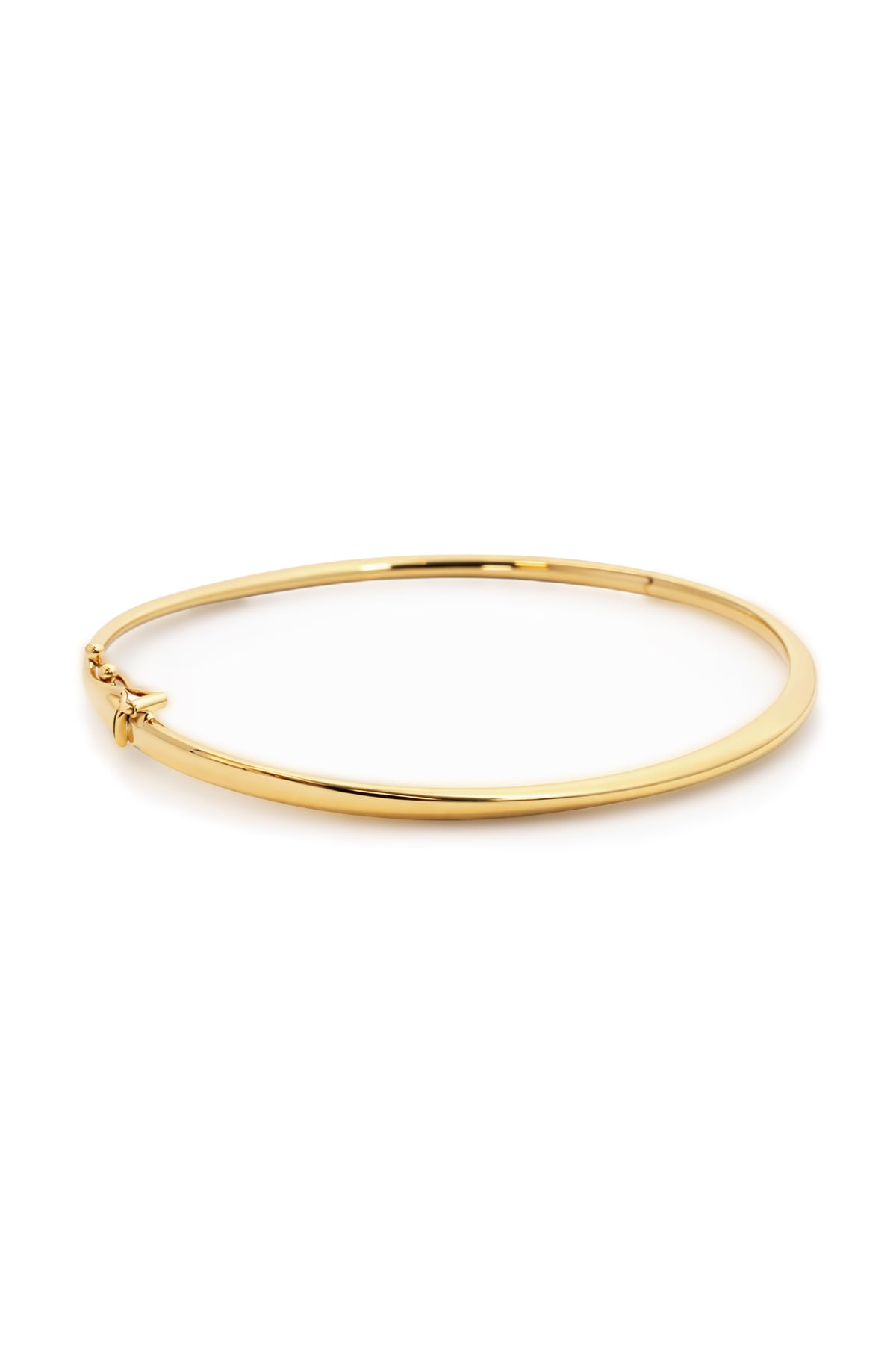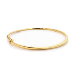 Elegant and easy to wear, this 9ct yellow gold bangle features a classic twist design that adds texture and visual interest while maintaining a timeless look. Crafted in an oval, hollow style for comfortable wear, it opens with a hinged mechanism and is finished with a secure safety clasp. A versatile piece that works beautifully on its own or layered with other bangles for a refined, polished finish.